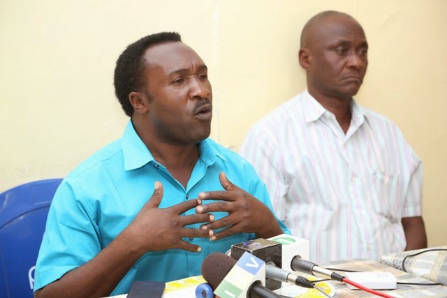 Mjumbe wa Baraza Kuu la Wazazi mkoa wa Njombe, Evarist Lupenza, akizungumza na waandishi wa habari juu ya safari yao kwenda kwa Lowassa. Pamoja nae ni Mwenyekiti wa Jumuia ya Wzazi mkoa wa Mwanza, Malila Lugoye.